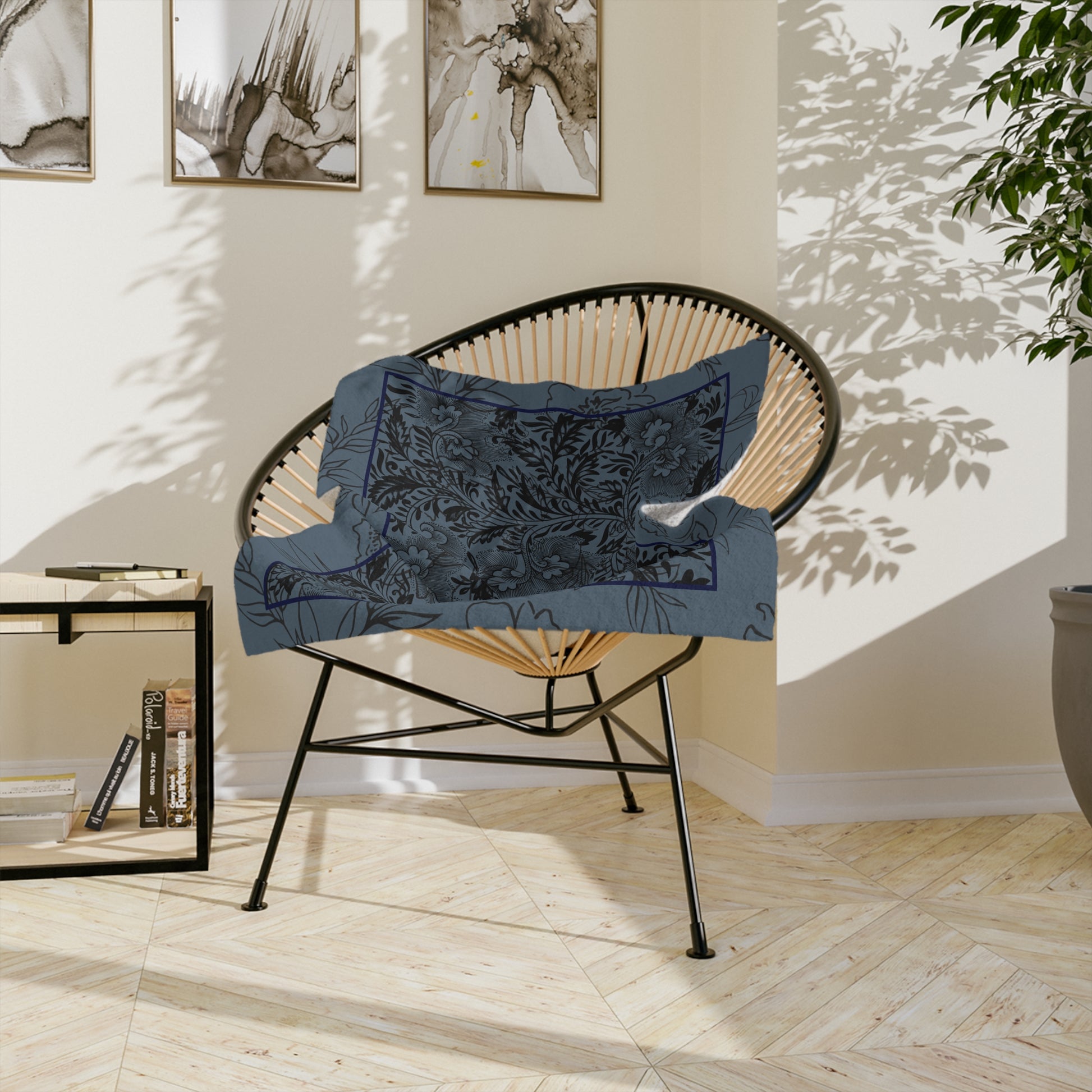 Blue Floral Velveteen Blanket — Plush Microfiber Throw with Vintage Botanical Pattern