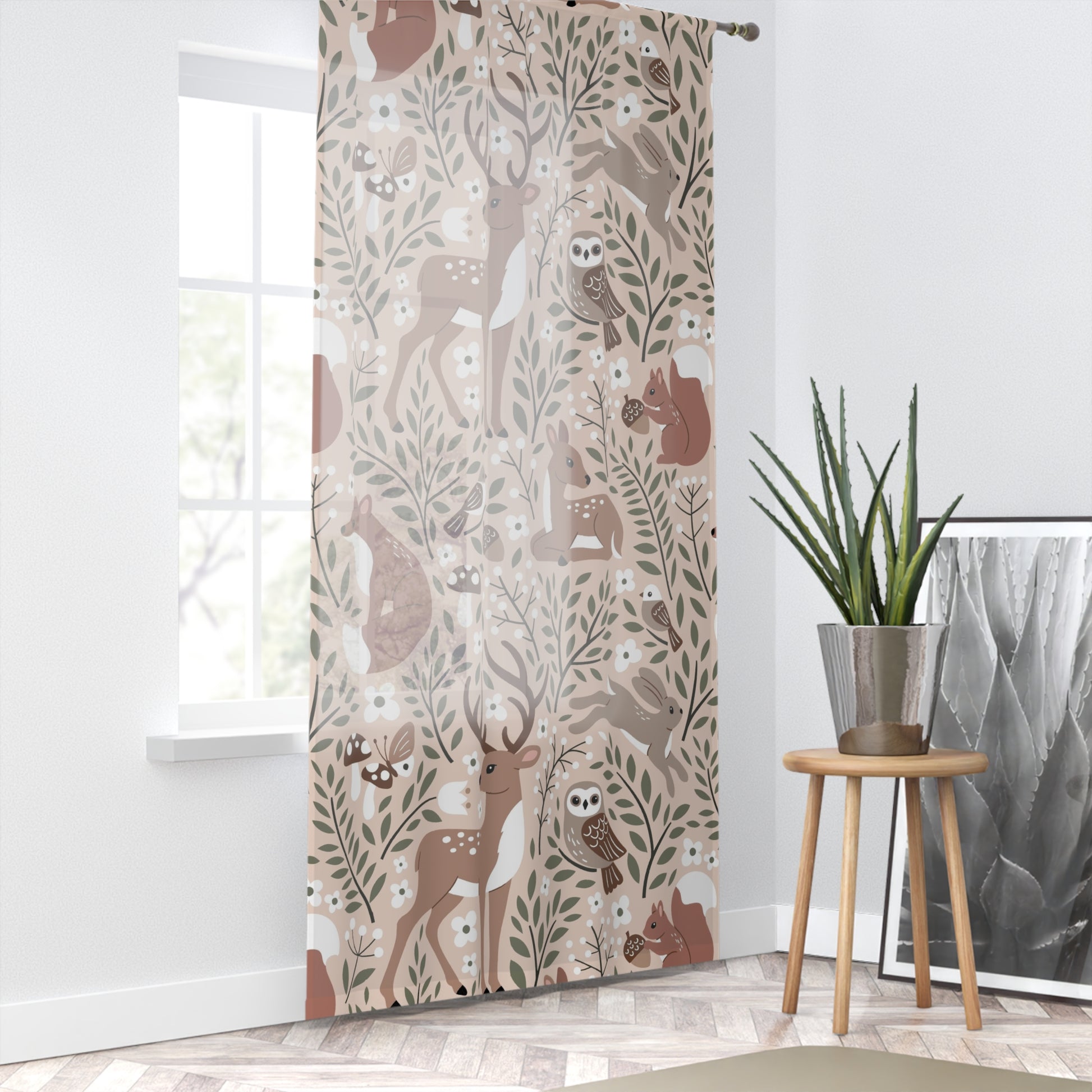 Woodland Deer Curtain — Neutral Forest Animals Window Panel